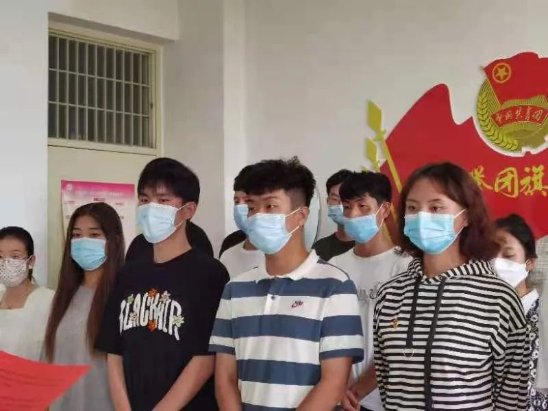 入团仪式在庄严的国歌声中拉开序幕。主持人宣布了新发展团员名单,王嘉豫为新团员佩戴团徽。闪闪的团徽佩戴在左胸前,新团员们的组织感和荣誉感油然而生。在新团员入团宣誓环节中,同学们满怀敬意地读出神圣而庄严的入团誓词,更加坚定了自己为共产主义事业奋斗的决心。2020级团员代表马岩宣读了《中国共产主义青年团章程》中有关团员权利和义务的相关规定,让新老团员再一次明悉了自己的责任和使命。入团仪式最后,王嘉豫对新团员提出了要求和期许,希望新团员时刻牢记自己是一名共青团员,自觉加强组织性和纪律性,同时激励老团员们也要不忘初心、砥砺前行,以身作则带领同学们勤奋学习、提高能力、奋力拼搏,争做新时代的优秀青年。