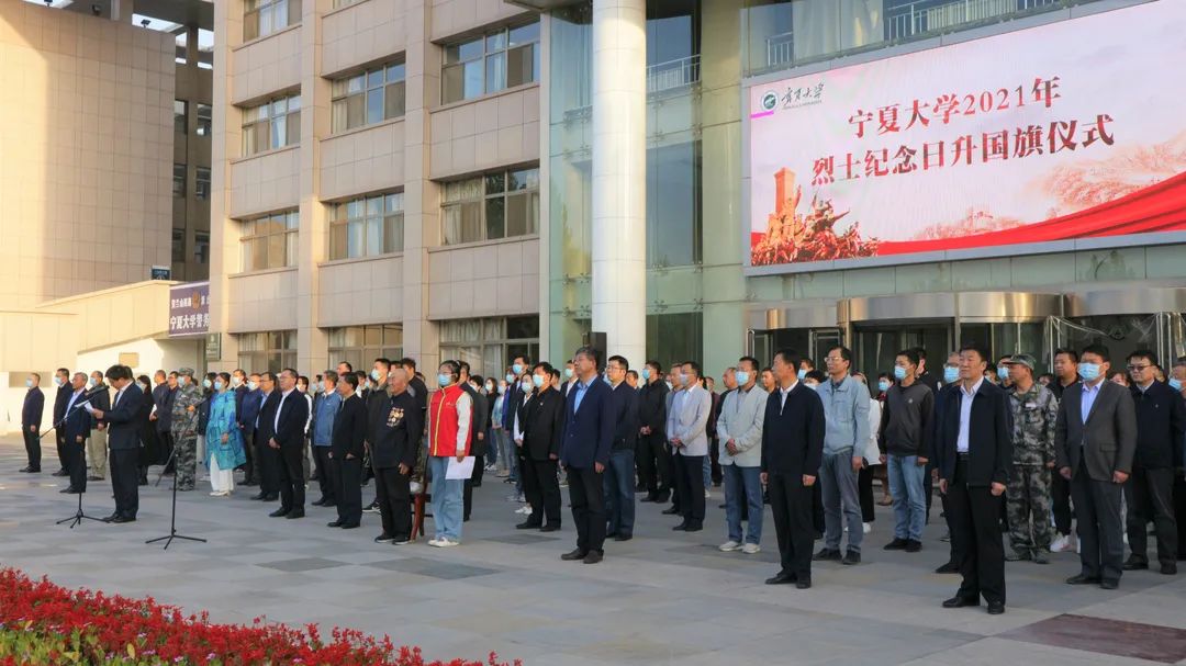 百年征程波澜壮阔,英雄浩气万古长存 ,9月30日是中国国家烈士纪念日,为缅怀先烈,传承先烈遗志,共抒爱国情怀,我校于贺兰山校区德勤楼门前举行2021年烈士纪念日升旗仪式。全体校领导、党群行政机关工作人员、各学院党政主要负责人、教职工代表及后勤、保卫工作人员和学生代表参加升旗仪式,校党委常委、副校长周震主持仪式。我院积极组织师生代表参与此次升旗仪式。