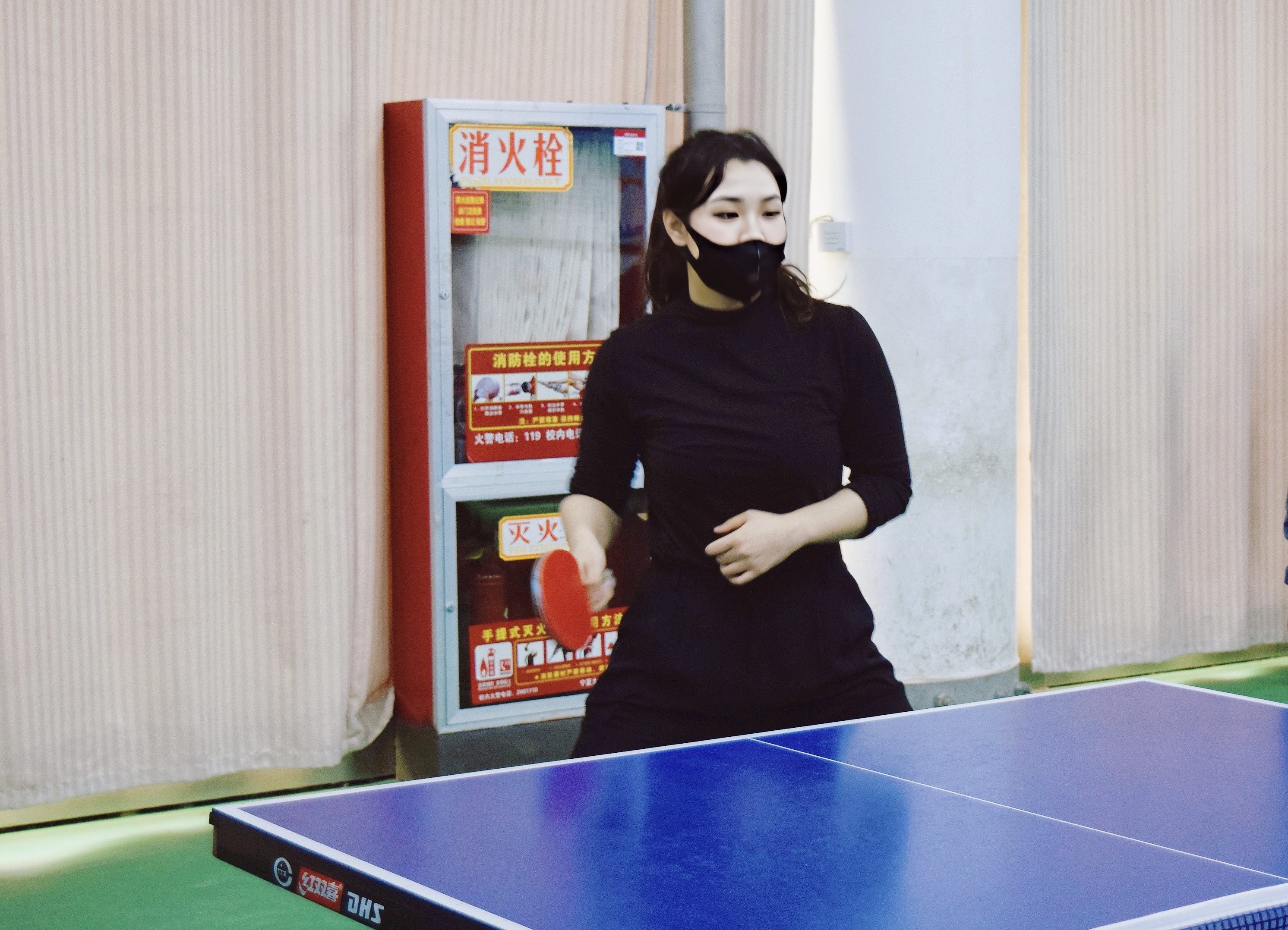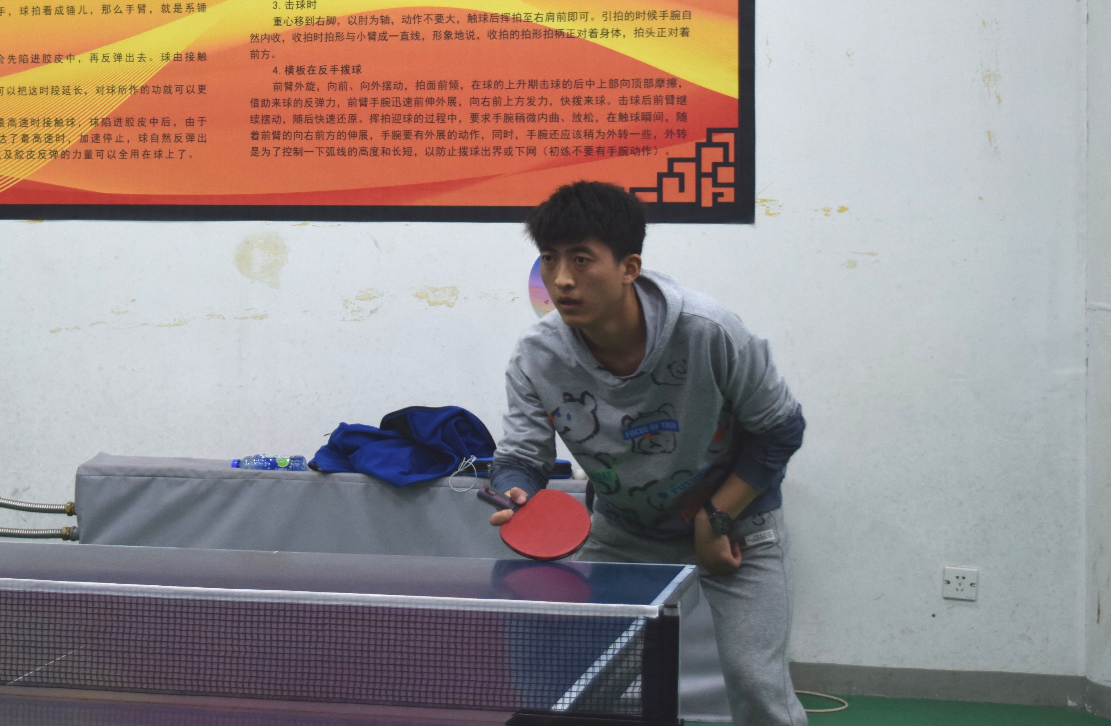 随着裁判员一声哨响,比赛开始了!我院选手含胸收腹、上身前倾,锐利的眼神盯紧台上小小的乒乓球——