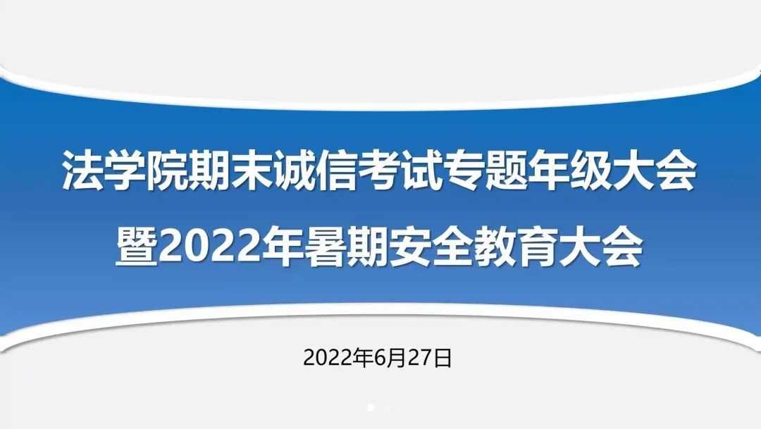 我院历来重视学风建设和学生安全教育,本次大会的召开进一步增强了同学们的诚信考试意识,树立了良好的学风、考风,同时对同学们在校及假期安全问题做出温馨提示,希望大家能够度过一个安全、充实、愉快的假期,期待每位同学平安返校。
