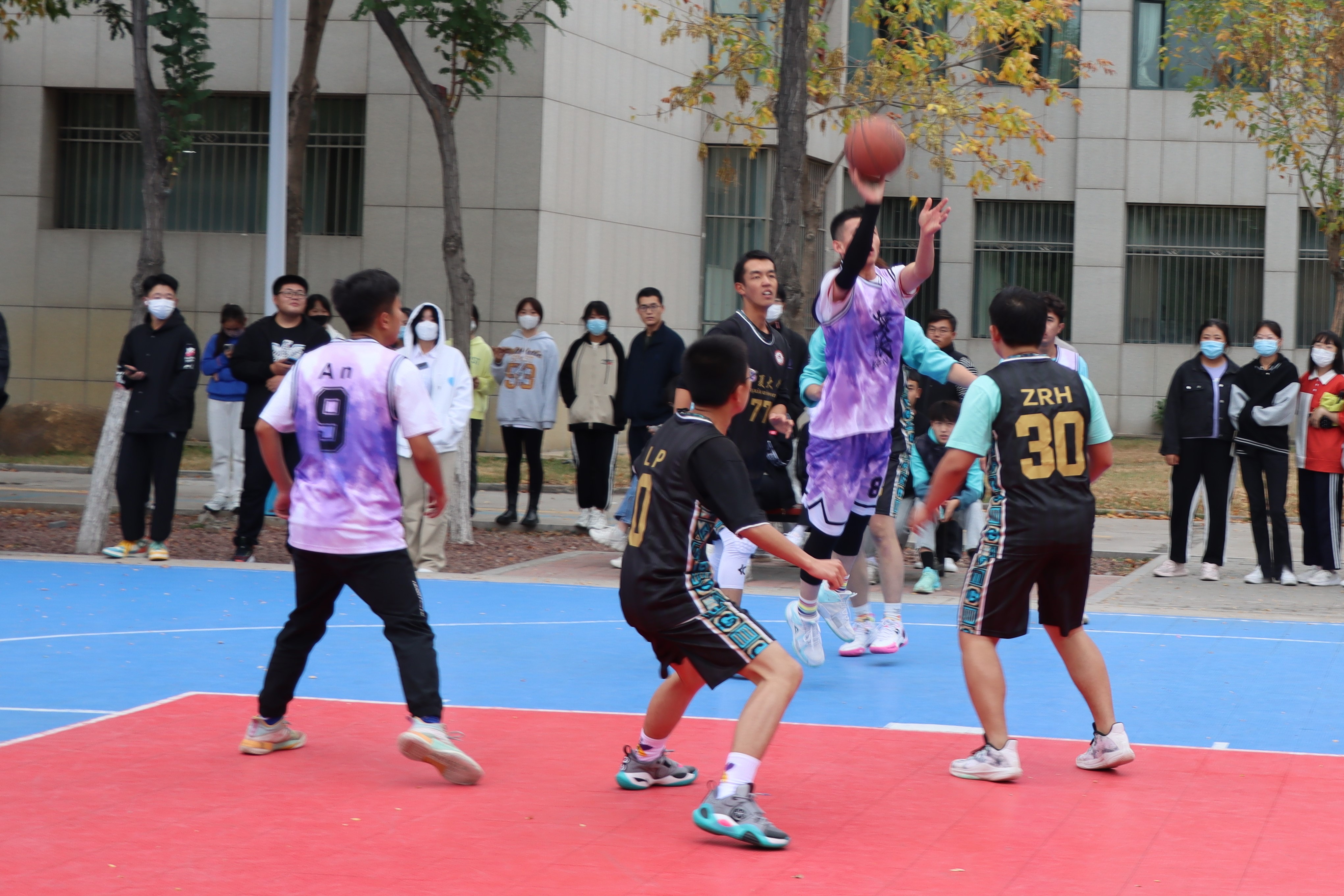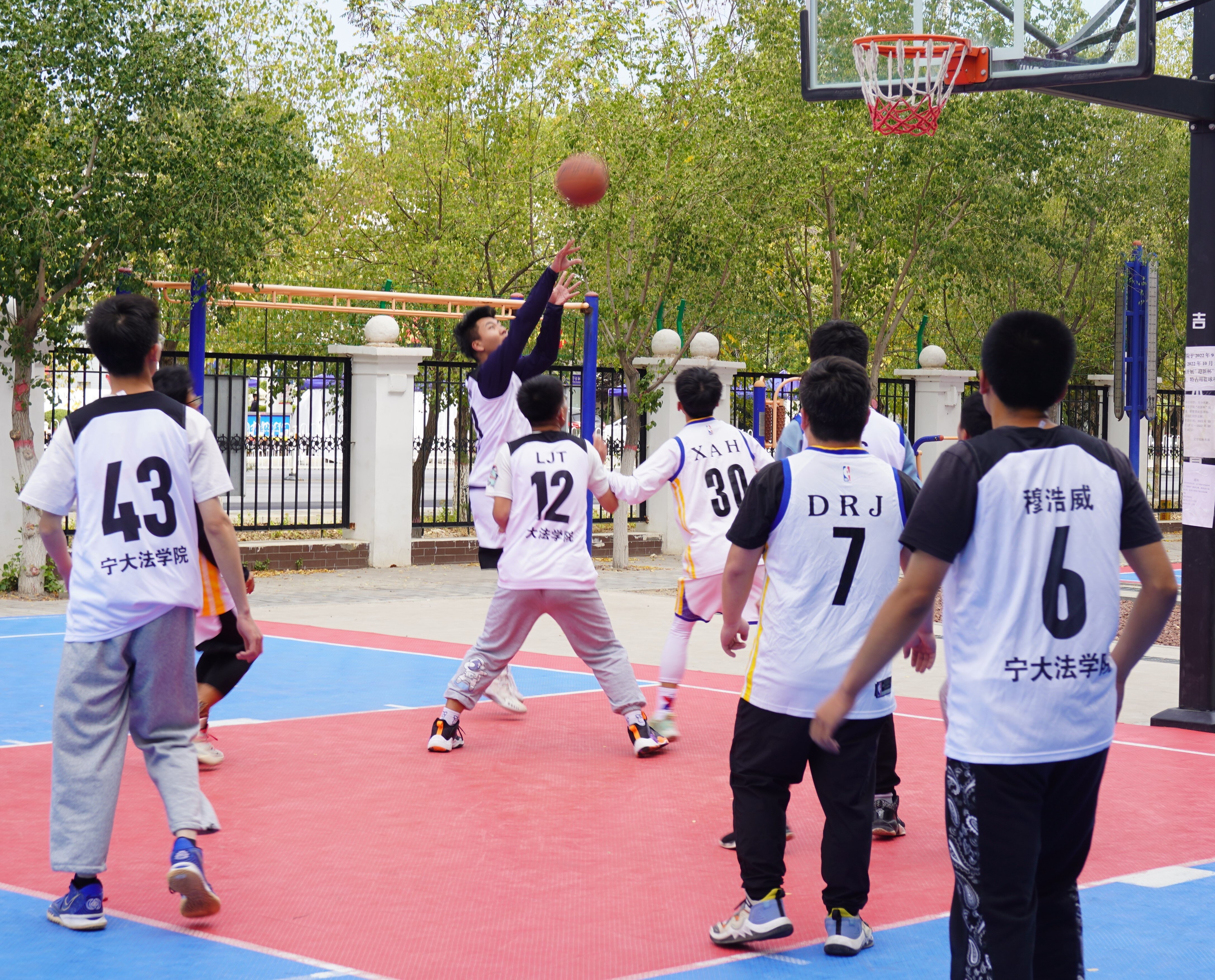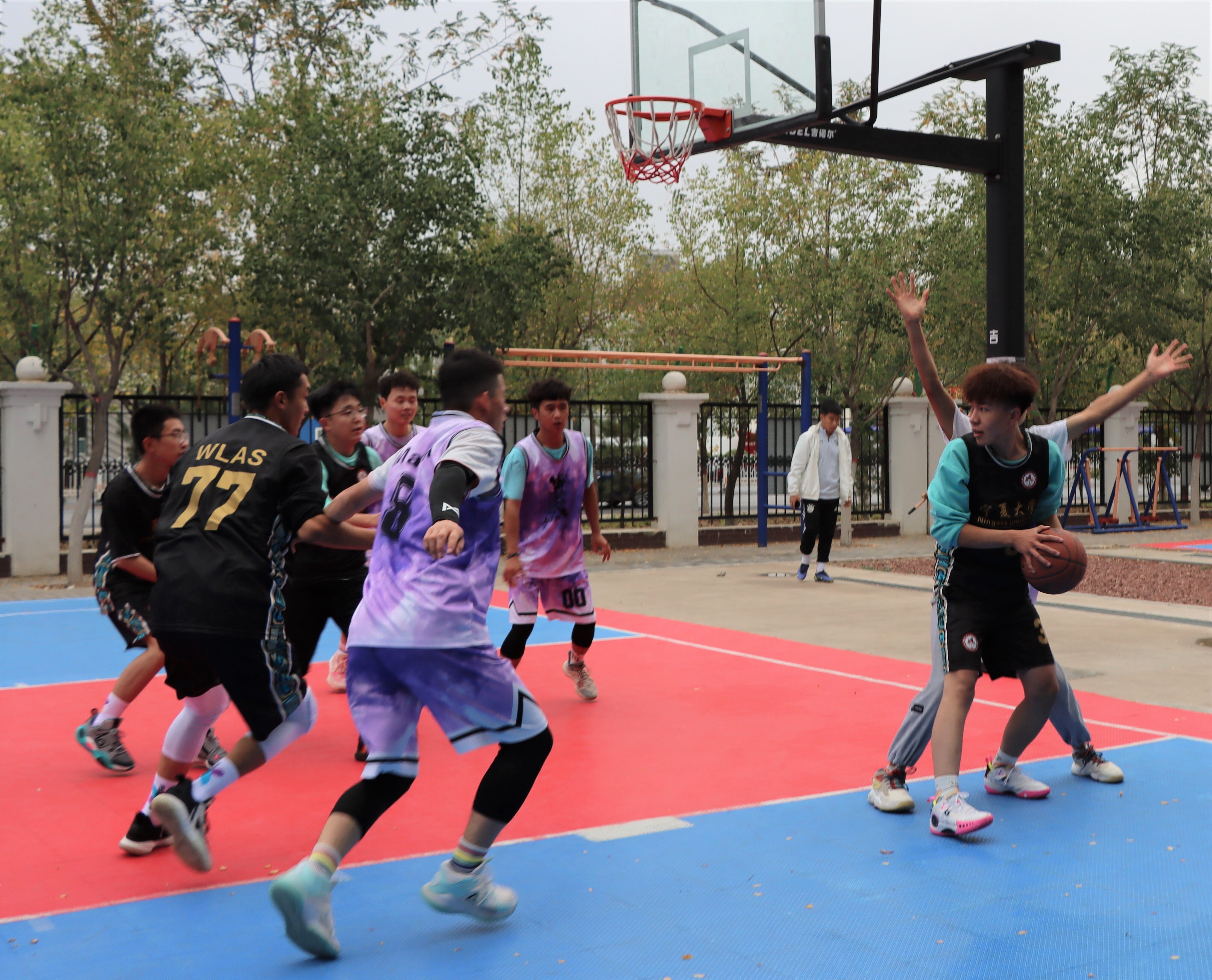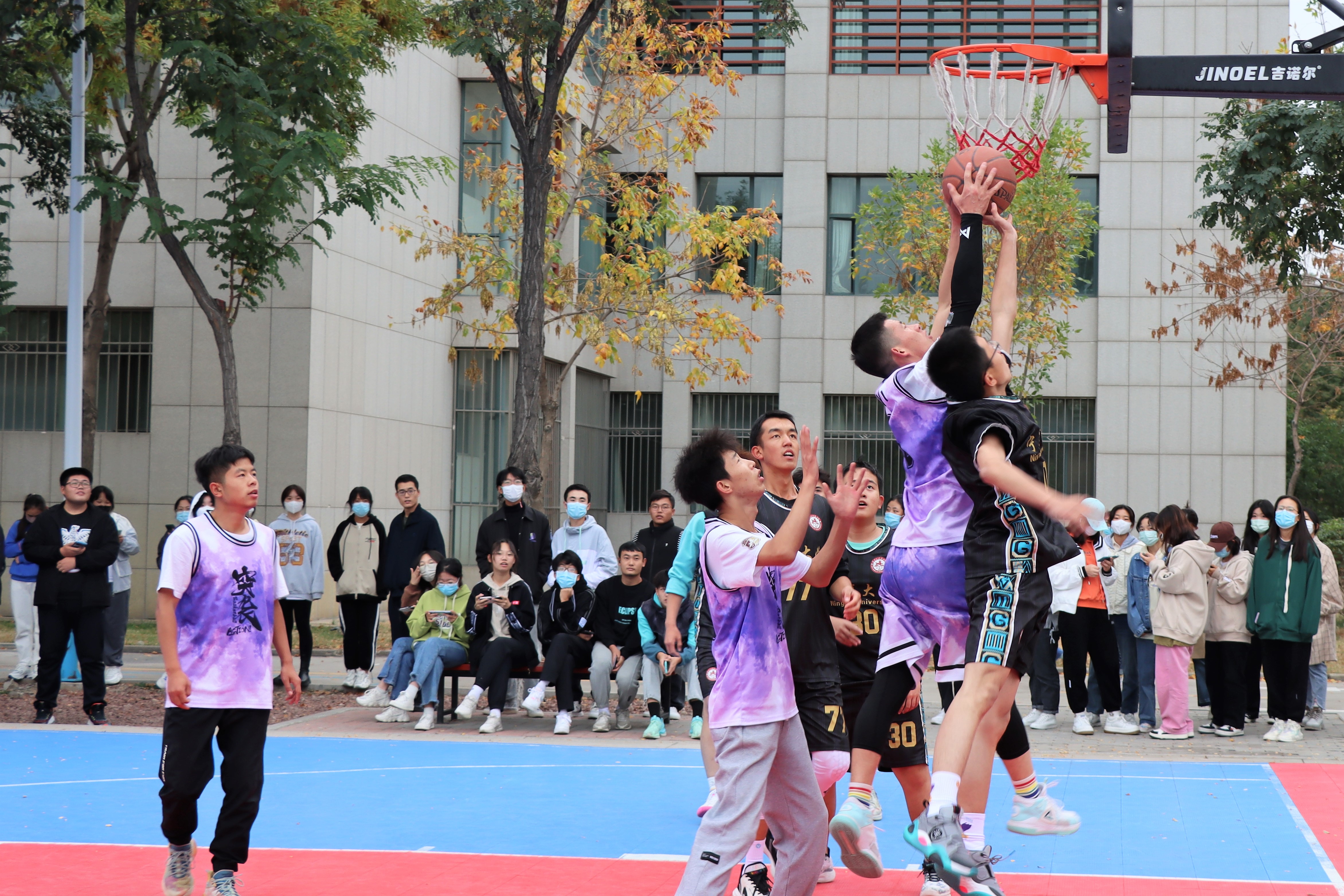 篮球场上比赛激情昂扬,观众席间呐喊声声助威。为丰富学生的校园文化生活,提高学生身体素质,培养学生体育运动能力,由我院团委、学生会举办的2022年“迎新杯”男子篮球赛于10月3日下午在贺兰山校区篮球场火热开赛。