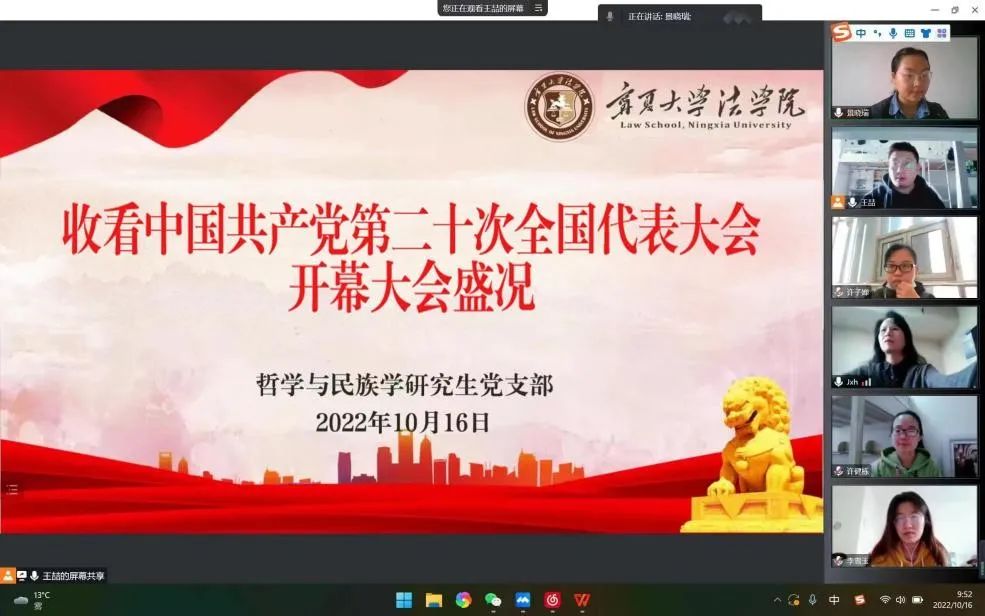 金秋十月迎盛会。10月16日上午,中国共产党第二十次全国代表大会在北京隆重开幕。william威廉英国哲学与民族学研究生党支部全体党员在线收看开幕大会盛况。