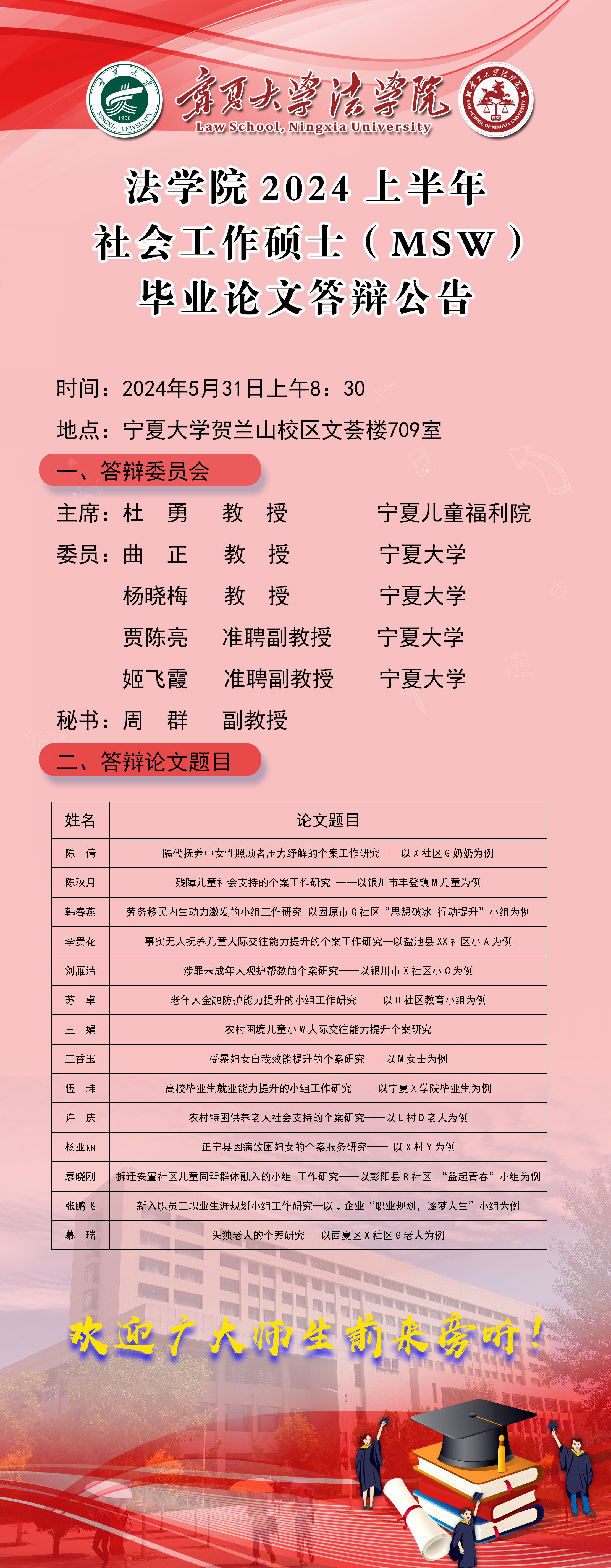 william威廉英国2024上半年社会工作硕士(MSW)毕业论文答辩公告