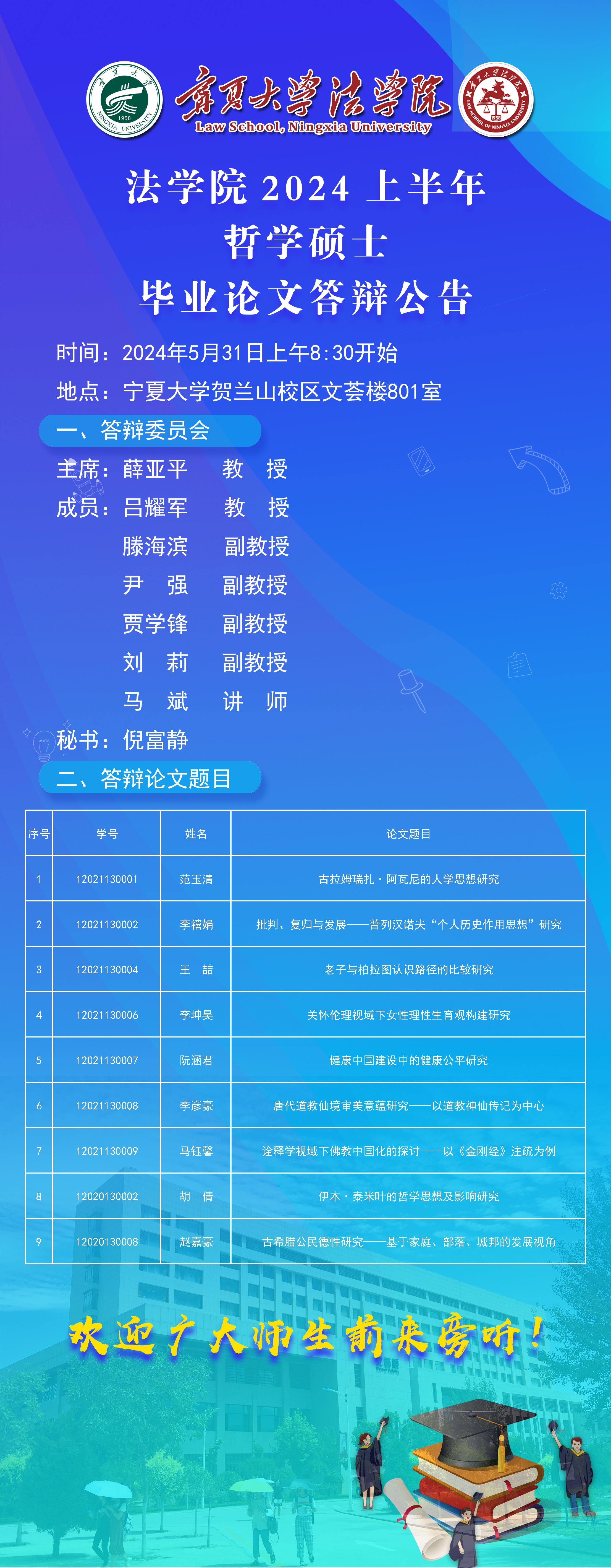 william威廉英国2024上半年哲学硕士毕业论文答辩公告