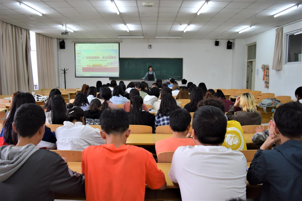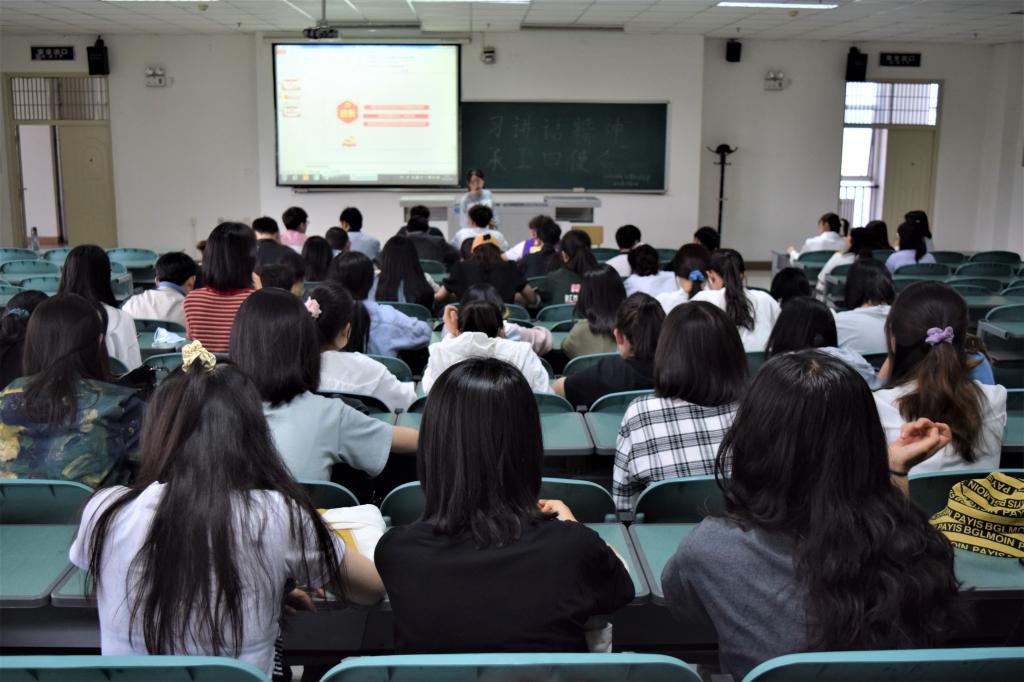 在主题团日活动中,各班团支部集体观看了习近平总书记考察清华大学时的讲话视频。习近平总书记在讲话中指出,“广大青年要肩负历史使命,坚定前进信心,立大志、明大德、成大才、担大任,努力成为堪当民族复兴重任的时代新人,让青春在为祖国、为民族、为人民、为人类的不懈奋斗中绽放绚丽之花。”习近平总书记对青年的殷切嘱托饱含深情,为万千学子勇毅前行注入了强大动力。同学们纷纷表示,要时刻把爱国和奋斗紧密结合起来,继承和发扬五四精神,把个人理想追求融入党和国家事业中,把自身前途命运同国家和民族前途命运紧紧联系在一起。