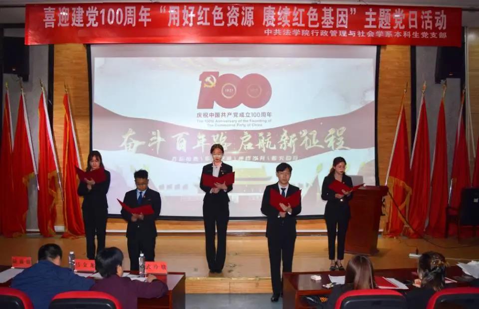 栉风沐雨一百载,春华秋实谱华章。为庆祝中国共产党成立100周年,深化当代大学生对党史教育的理解与认识,5月6日下午6点,我院行政管理与社会学系本科生党支部在怀远校区英才报告厅举办喜迎建党100周年“用好红色资源,赓续红色基因”主题党日活动,副院长马金龙、党支部书记武玲娥、行社系主任陆筱璐出席,支部全体党员、发展对象、入党积极分子到场参加。活动由2018级行政管理班王丹主持。
