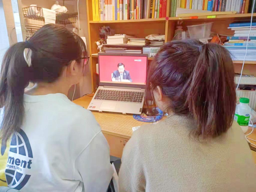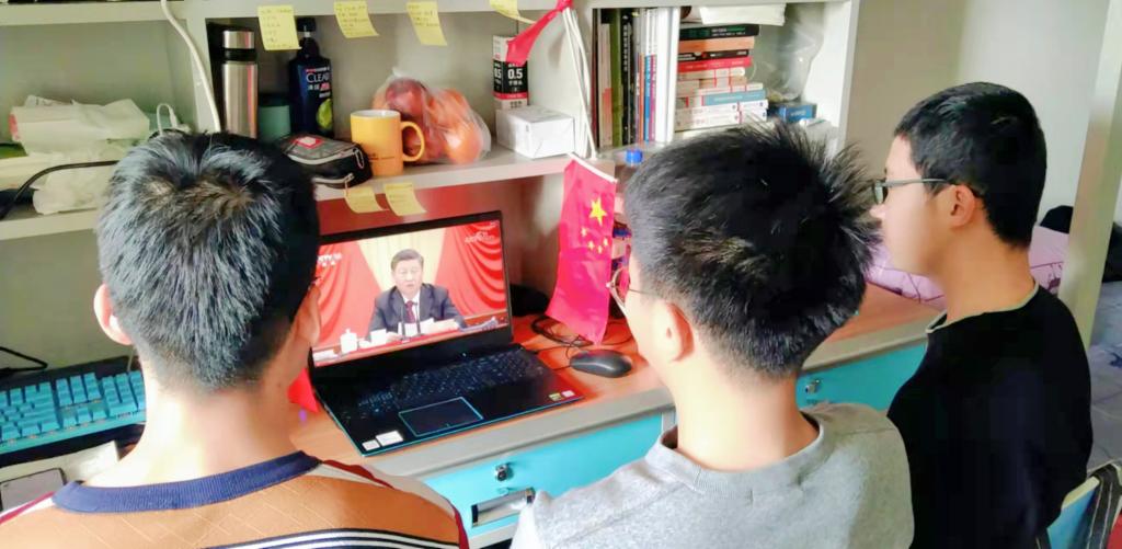 尽管当前疫情形势严峻,同学们都在宿舍里隔离,但是阻挡不了大家学习十九届六中全会精神的心,一大早同学们在宿舍里一同观看十九届六中全会直播,全面总结党的百年奋斗重大成就和历史经验,将使全党增长智慧、增进团结、增加信心、增强斗志,更加坚定、更加自觉地践行初心使命,在新时代新征程上展现新气象新作为。历史从哪里开始,思想进程也从哪里开始。作为大学生,每个同学都有义务全面提高自己的思想道德修养。