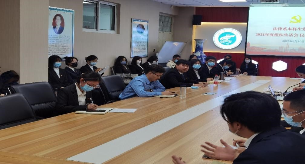3月10日下午,法律系本科生党支部于801会议室召开2021年度组织生活会,会议由组织委员柴李娜主持,支部全体党员同志参加,学院党委委员靳永雄同志列席会议指导并点评。