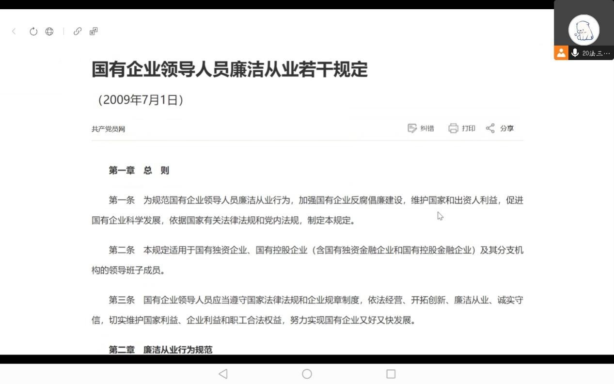关于国有企业的领导人员廉洁从业若干规定,刘龙震也进行了领学。国企作为中国的经济支柱,待遇较为优厚,这也导致国有企业的领导人员面临更大风险。在这种情况下,国企领导人员廉洁从业的若干规定十分必要且非常重要。